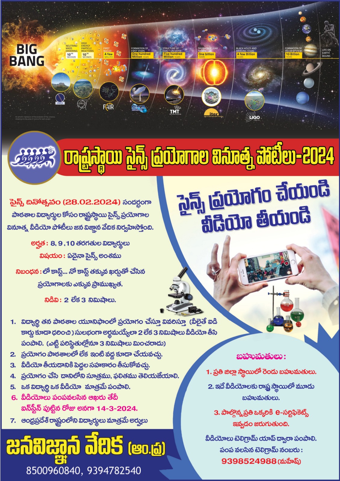 ద్వితీయ రాష్ట్రస్థాయి సైన్స్ ప్రయోగాల వీడియో పోటీలు 2024